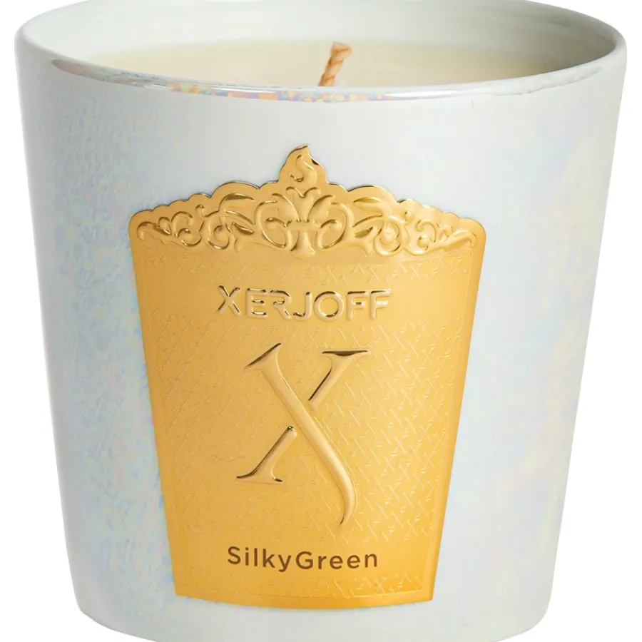 Dit is voornamelijk te danken aan de hoogwaardige plantaardige was en de handgegoten productie van de kaarsen. De Geurkaars Silky Green brandt ongeveer 45 uur. Voordat je de vlam voor de eerste keer uitblaast, moet de bovenste waslaag volledig vloeibaar zijn geworden.De Scented Candle Silky Green is visueel verbluffend met zijn prachtige kaarshouder. Het toont de afbeelding van een kaars in een rijke gouden kleur. Het stijlvolle kopje is gemaakt van Limoges porselein, dat als bijzonder kostbaar wordt beschouwd. Het wordt gekenmerkt door een delicate glans en robuustheid tegelijkertijd. De kaars brandt veiliger in de beker dan in een open kandelaar. Blijf echter uit voorzorg altijd in de kamer als je de geurkaarsen van XERJOFF aansteekt.