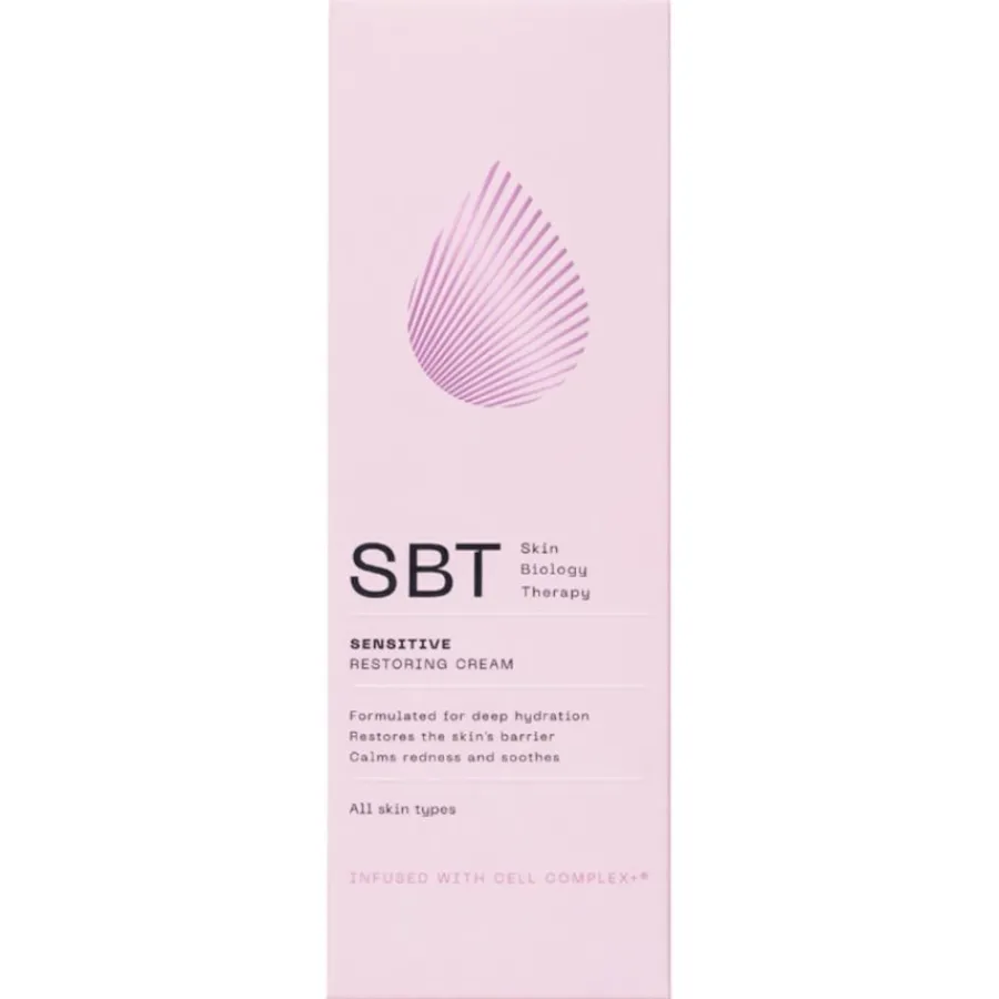 De SBT Herstellende Crème is een gezichtsverzorgingsproduct dat speciaal is ontwikkeld om te voldoen aan de behoeften van de gevoelige huid. De samenstelling, die het Cell Complex™ bevat, heeft als doel de natuurlijke barrière van de huid te ondersteunen. Bij regelmatig gebruik kan de crème bijdragen aan een evenwichtig en gehydrateerd huidgevoel. De textuur laat de huid comfortabel en soepel aanvoelen zonder een zware film achter te laten. Het eenvoudige, elegante ontwerp van de lichtroze flacon benadrukt het karakter van SBT’s Skin Biology Therapy, dat gericht is op het behoud van het uiterlijk van de huid.