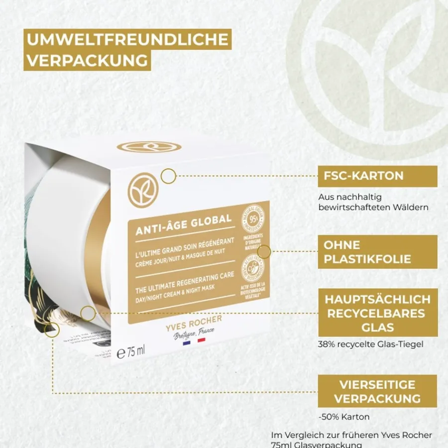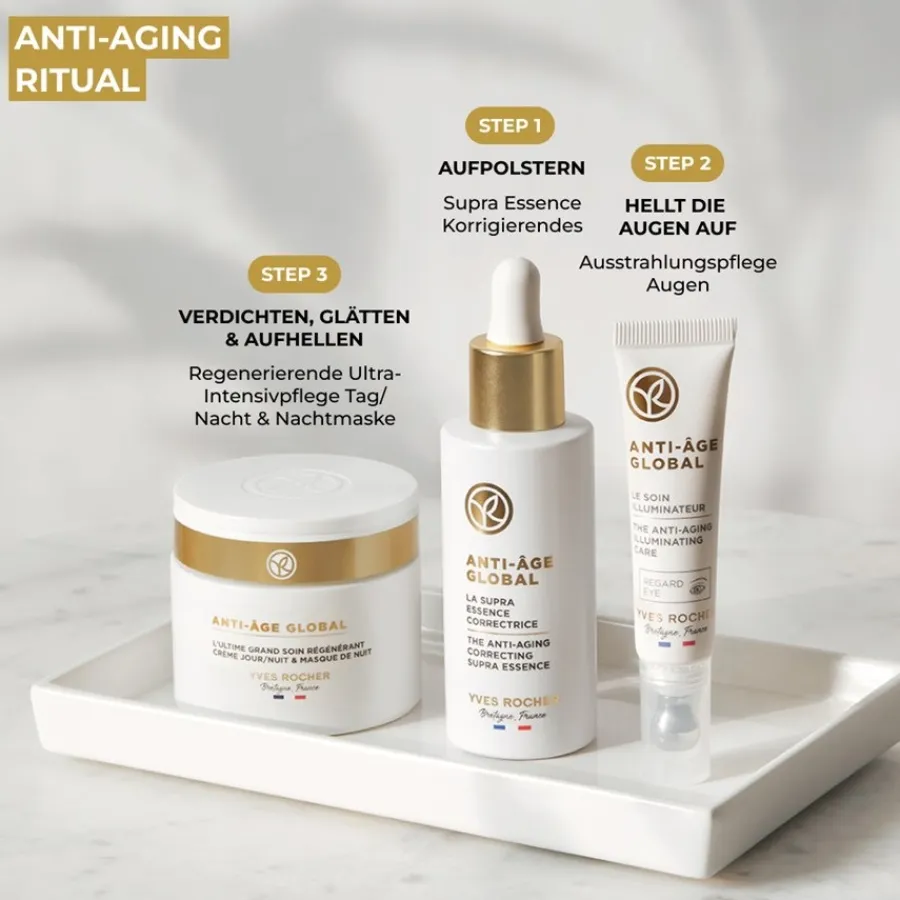 De kracht van 3 verzorgingsproducten is gecombineerd in het ANTI-ÂGE GLOBAL Regenerating Ultra-Intensive Care Day/Night & Night Mask