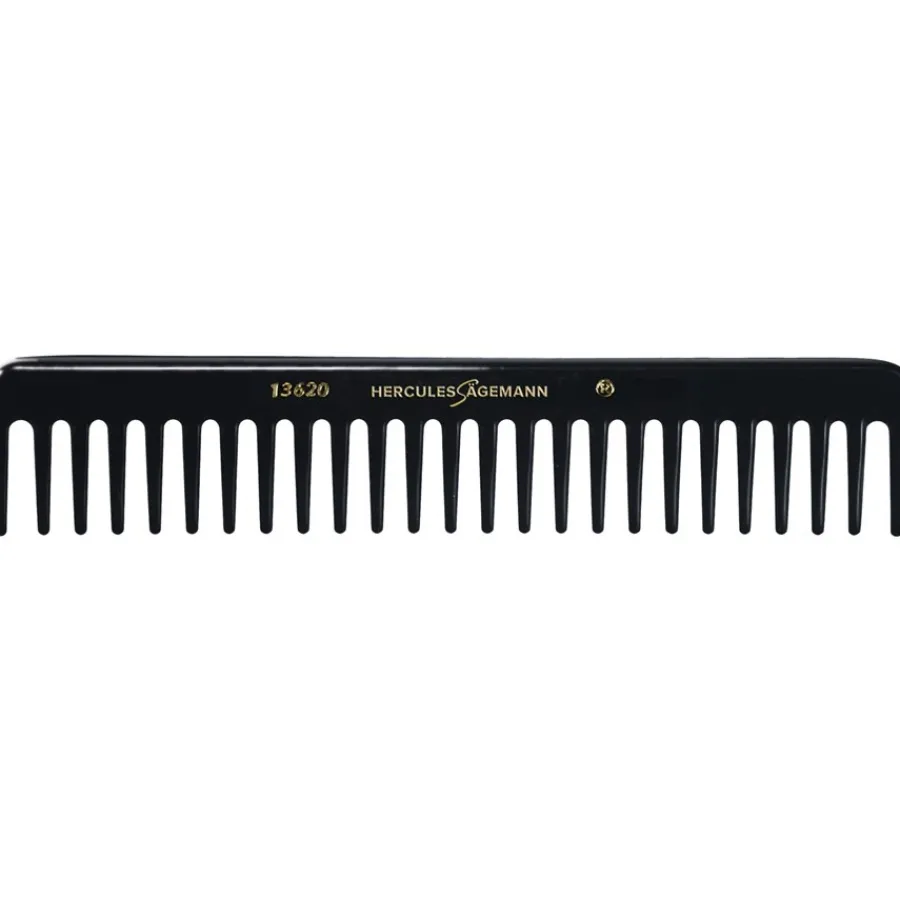 De stylingkam model 13620 is een product dat geschikt is voor veel moderne kapsels. Het is uitgerust met een perfect gerangschikte rij grotere tanden met zachte rondingen. Dit minimaliseert het risico op letsel aan de hoofdhuid tijdens het stylen en biedt tegelijkertijd een heerlijke verzorging voor het haar. Het brede handvat maakt efficiënt en flexibel gebruik mogelijk. De kammen van Hercules Sägemann zijn gemaakt van eboniet, een kostbaar materiaal afgeleid van rubber, dat vooral wordt gekenmerkt door zijn hoge flexibiliteit.De kammen en borstels van Hercules Sägemann worden geproduceerd door de New-York Hamburger Gummi-Waaren Compagnie, een bedrijf dat gespecialiseerd is in de productie van professionele haarborstels en kammen voor kappers. Het bedrijf vervaardigt de vele fijne producten nog steeds met de hand. Een groot aantal professionals over de hele wereld waardeert de hoogwaardige producten en bestelt ze keer op keer.Je kunt de stylingkammen en andere producten van het label hier bij Parfumdreams bestellen. Overtuig jezelf van de uitstekende kwaliteit van de haarborstels & kammen.