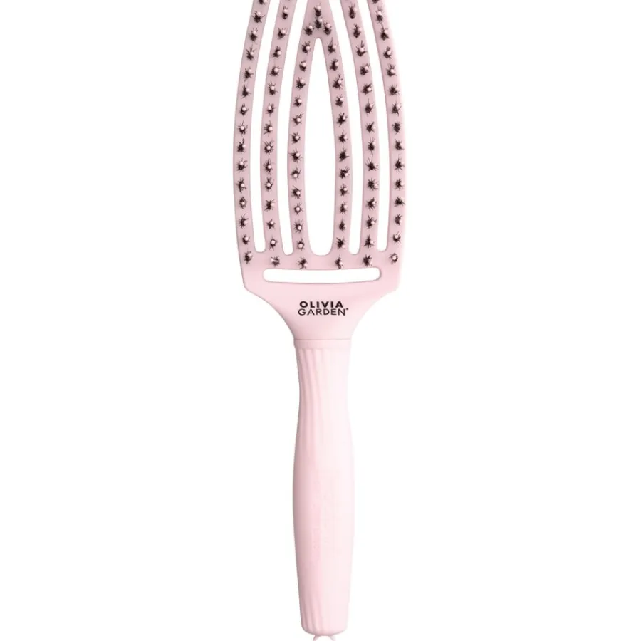 De Olivia Garden Finger Brush Combo Pastel Pink Medium is voorzien van een mix van flexibel nylonhaar en echt zwijnenhaar. Met deze waardevolle combinatie ontwart de haarborstel moeiteloos je zwaar geknoopte haar zonder eraan te trekken. Borstelen doet geen pijn en beschadigt je haar of hoofdhuid niet.