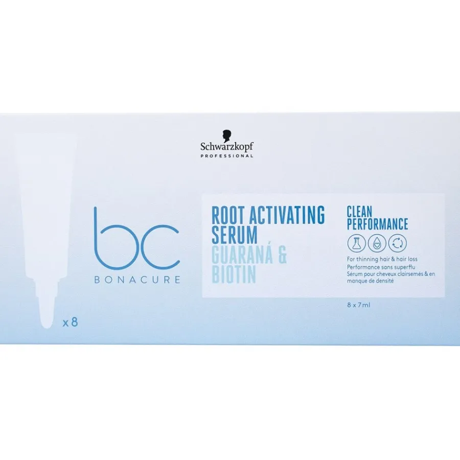 Het geheim van de hoge effectiviteit van Scalp Care van Schwarzkopf Professional ligt in de exquise plantenextracten. Met twee keer zoveel cafeïne als koffie en talrijke antioxidanten ondersteunt guarana op milde wijze het ontstaan van haarwortels van binnenuit. Biotine daarentegen speelt een belangrijke rol in de keratineproductie, wat de sterkte en vitaliteit van het haar verbetert. Haarverzorging met het Root Activating Serum van Schwarzkopf Professional is heel eenvoudig en past perfect in de dagelijkse haarverzorgingsroutine. Het product wordt dagelijks op de hoofdhuid aangebracht en zachtjes ingemasseerd, uitspoelen is niet nodig. De olievrije, gewichtloze formule maakt het product onzichtbaar, maar niet het geweldige verzorgingsresultaat.