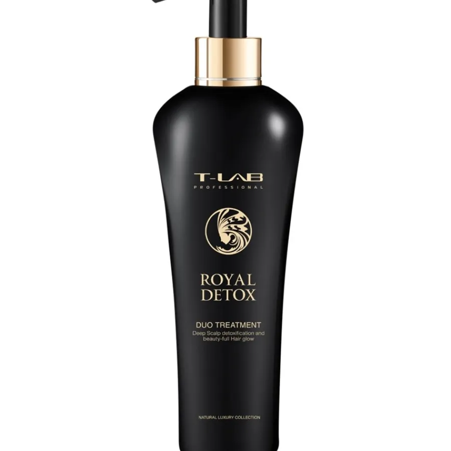 Royal Detox gaat schade aan haar en huid tegen die voornamelijk wordt veroorzaakt door milieu-invloeden en UV-straling. In het bijzonder maakt T-LAB Professional vet, vermoeid, dunner en futloos haar meer volumineus, glanzend en gerevitaliseerd op de lange termijn. Het product bevat onder andere peptiden, aminozuren en plantenextracten van de orchideeënbloem. Duo Treatment kan dagelijks of meerdere keren per dag worden gebruikt, zelfs op een gevoelige, geïrriteerde hoofdhuid.