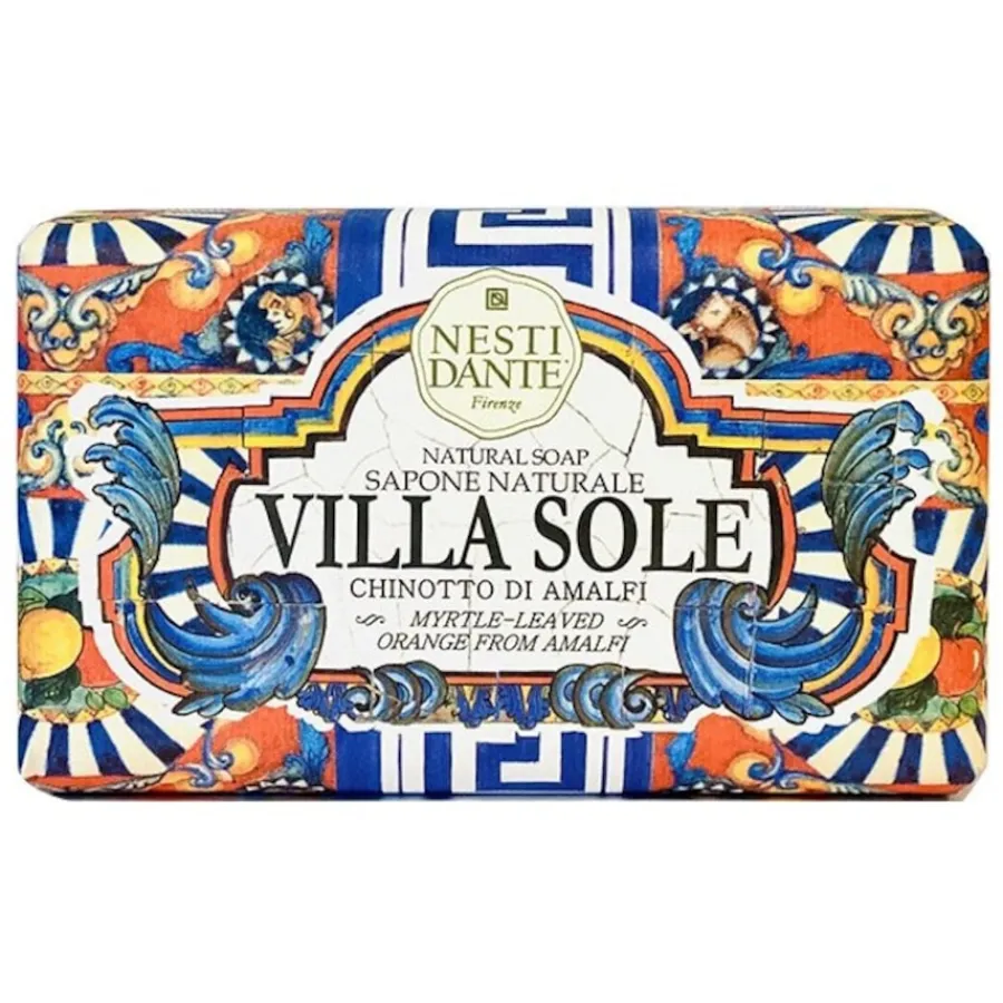 Deze huidverzorgingszeep is gemaakt van puur natuurlijke ingrediënten. Maar dat is ook waar het Italiaanse cosmeticabedrijf Nesti Dante Firenze, dat al meer dan 70 jaar bestaat, bekend om staat. Zoals de naam van het product – Myrtle-leaved Orange of Amalfi Soap – al verraadt, vormen savoury orange and myrtle aromas de heerlijke basis van de zeep. Het bevat ook smaken van verfrissende citroenen. In deze combinatie biedt Villa Sole bijzondere verwenmomenten voor de zintuigen. Geen wonder, want de geuren zijn typisch mediterraan, waar sensueel genot hoog in het vaandel staat. De vaste zeep is veelzijdig: hij kan worden gebruikt voor het wassen van de handen en voor baden en douchen.