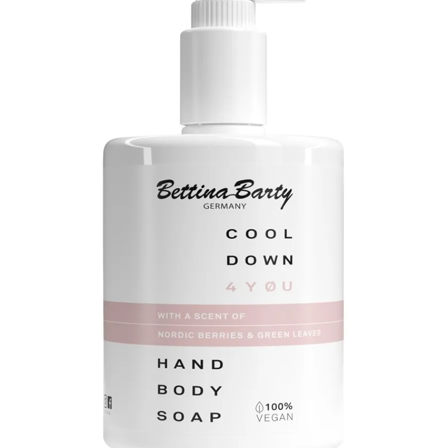 Bettina Barty’s Rosé Hand & Body Soap streelt de zintuigen met een fruitige samenstelling die sinaasappelgeur combineert met pruimnoten en een vleugje wilde bes. De pompdispenser maakt het makkelijk om precies de juiste hoeveelheid te nemen. Bij het inmasseren vormt zich een zacht schuim op de huid. Daarna volgt het verkoelende effect waarvoor de Cool Down 4 You-lijn door veel gebruikers wordt gewaardeerd. Het zorgt voor een frisse start van de dag of ontspanning na het sporten.Zoals bij al haar producten hecht Bettina Barty veel waarde aan kwaliteit. Rosé Hand & Body Soap is een veganistisch verzorgingsproduct. De zeep bevat geen microplastics. De dispenser van de tijdloos elegant vormgegeven fles is gemaakt van recyclebaar materiaal. De productie van het bedrijf vindt volledig plaats in Duitsland. Ook dit draagt bij aan de positieve milieubalans van dit duurzame huidverzorgingsproduct.