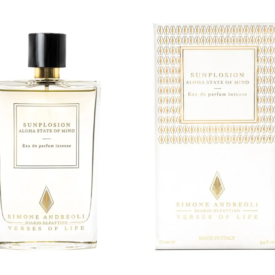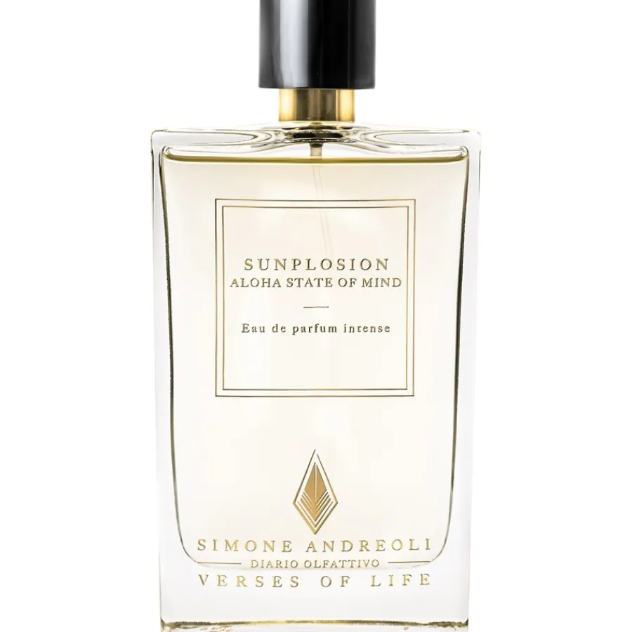 Aloha State of Mind van het merk Simone Andreoli wordt gekenmerkt door een heerlijke, perfect geslaagde creatie van interessante geuren. De topnoten van limoen en mango beloven een verfrissend fruitige geurbeleving. De exotische hartnoot biedt bepaalde warme nuances met guave, hibiscus en kokosnoot. Hibiscus heeft een vleugje wildheid en guave heeft zoete en sappige aspecten. De basisnoot van sandelhout versterkt dit nog eens en voegt enkele verleidelijke, houtachtig-masculiene en sensuele nuances toe aan het algehele, passende concept.Uiteindelijk is Sunplosion – Aloha State of Mind Eau de Parfum Spray Intense aantrekkelijk modern.