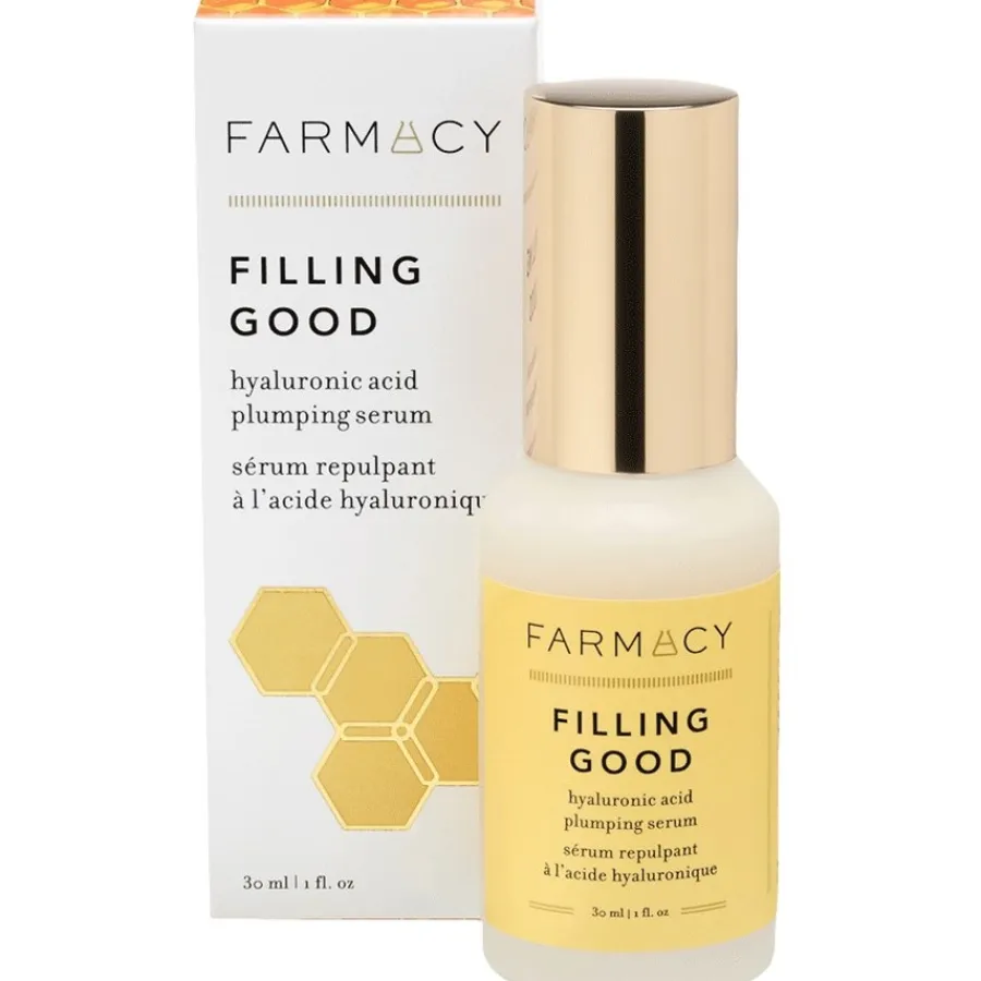 De verschillende moleculaire massa’s hyaluronzuur in Filling Good Hyaluronic Acid Plumping Serum van Farmacy Beauty zijn uniek in de serum- en behandelingssector. Drie verschillende molecuulgewichten zorgen ervoor dat het natuurlijke vochtgehalte van alle huidlagen wordt verhoogd en niet alleen het oppervlak. Het serum bevat ook aminozuren die de vochtbarrière van de huid versterken. Veganistische collageenpeptiden bevorderen de celvernieuwing, wat resulteert in een zichtbare vermindering van fijne lijntjes en een gladder, meer gehydrateerd uiterlijk. De toepassing is heel eenvoudig: Het huidvergrotende serum wordt ’s ochtends en ’s avonds op de gereinigde huid aangebracht. Om het hydraterende effect te optimaliseren, moet daarna een vochtinbrengende crème worden gebruikt.