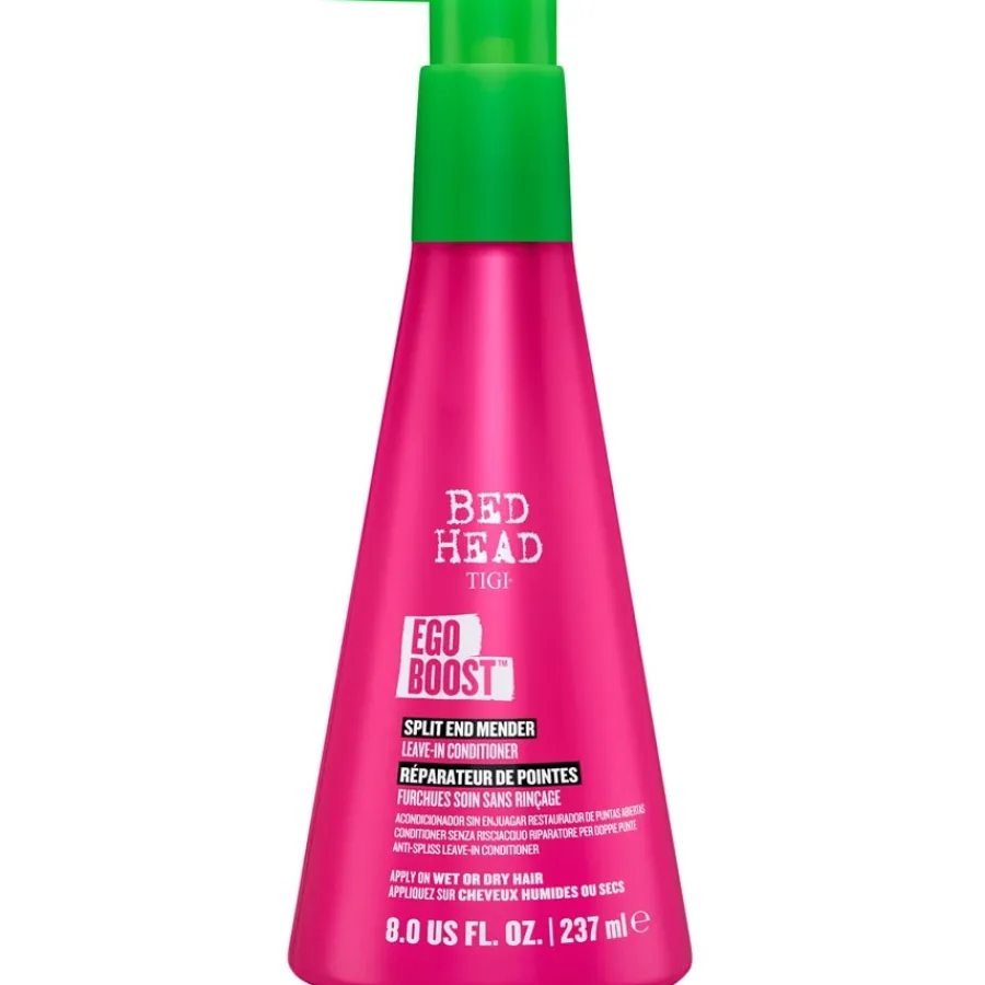 Het styling & finishing product Ego Boost van TIGI Bed Head wordt na het wassen spaarzaam in handdoekdroog haar gewreven en voorzichtig in de punten gemasseerd. Niet uitspoelen! Vervolgens het haar stylen zoals gewenst.