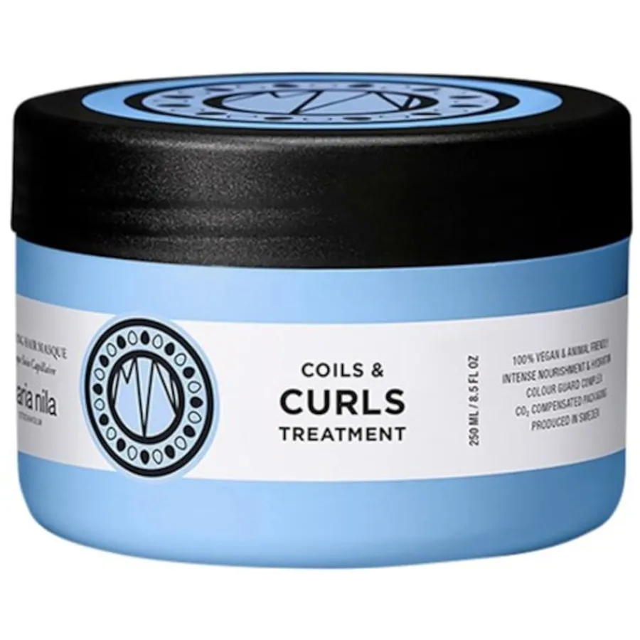 Het Coils & Curls Treatment Mask van Maria Nila is een krachtig haarverzorgingsproduct dat het haar diep verwent met waardevolle ingrediënten. Het is de ideale keuze voor krullend en golvend haar. De formule combineert het exclusieve Curl Guard Complex met jojoba-olie, aloë vera, sheaboter en vitamine E. Het definieert de krullen, ontwart ze en maakt ze makkelijker doorkambaar. Met het Curl Guard Complex voorziet het het haar van langdurige hydratatie en laat het glanzen. Het beschermt ook tegen pluizen en voorkomt haarbreuk. Het voedt en balanceert de hoofdhuid en maakt deze zacht en soepel.