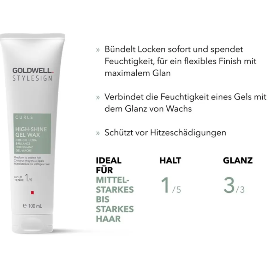 Klaar gedefinieerdekrullen, prachtig gebundelde krullen – dit kun je bereiken met de High Shine Gel Wax van Goldwell, de haarstyling voor hoge eisen. Krullend haar heeft eigenlijk een zachte verzorging nodig die het laat glanzen – een wax. Een gel daarentegen belooft een sterke fixatie die flexibel blijft maar het haar wel in model houdt. Met de High Shine Gel Wax heeft Goldwell een haarstylingproduct gecreëerd dat aan beide eisen voldoet. De gelwax biedt versteviging, maar blijft flexibel en geeft je krullen een verleidelijke glans.