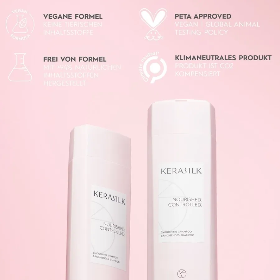 Breng voor de dagelijkse shampoobeurt van broos, gepermanent en gestrest haar een kleine hoeveelheid van de Taming Shampoo aan in de palm van je hand. De zijdezachte shampoo wordt vervolgens ingemasseerd van de schacht tot de punten. Het zachte en geurige schuim wordt na ongeveer 3 tot 5 minuten uitgespoeld met veel helder water. Maak je haarverzorgingsroutine compleet met een Kerasilk conditioner. Taming Shampoo uit de Essentials verzorgingslijn is vrij van siliconen of sulfaten en bevat geen kleurstoffen, microplastics of minerale oliën. 90,3 procent van de ingrediënten is van natuurlijke oorsprong.