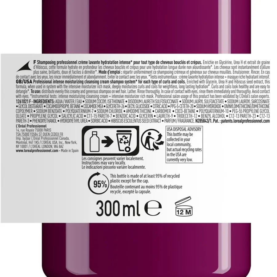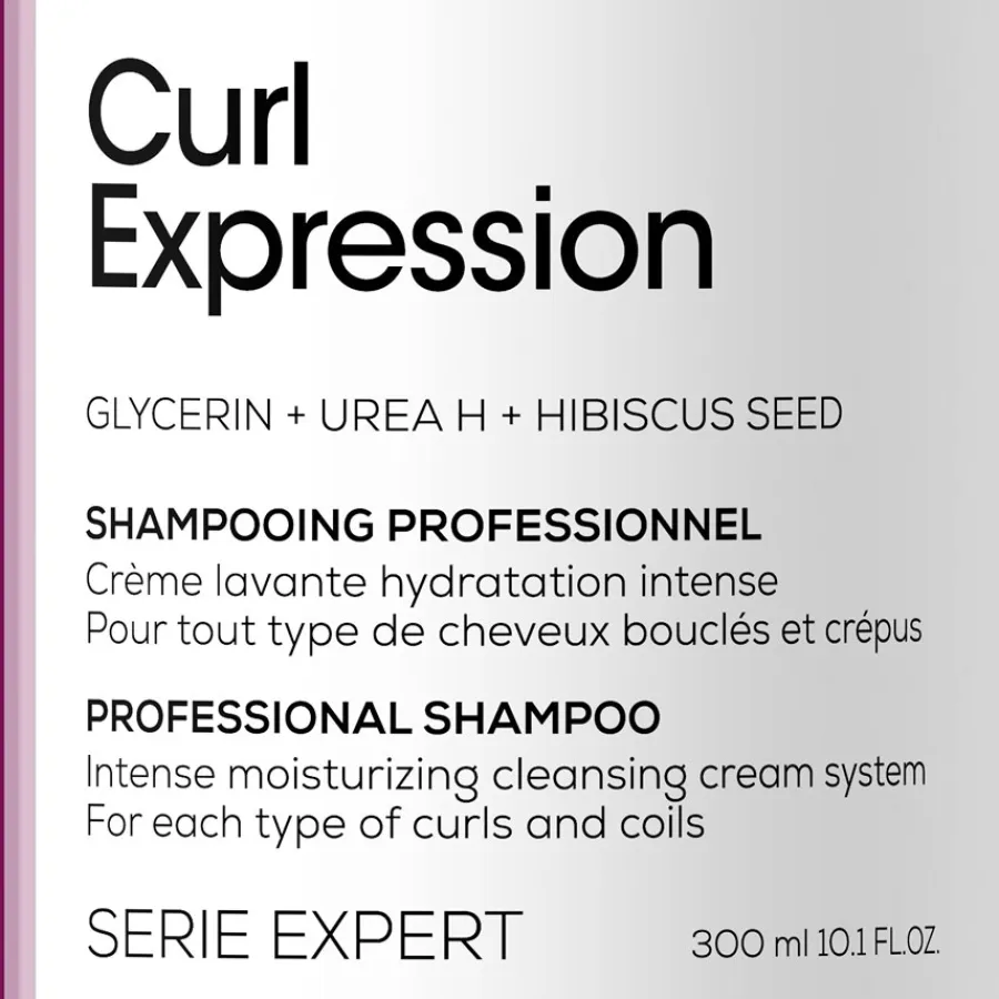 De L’Oréal Professionnel Paris Serie Expert Curl Expression Intense Moisturising Shampoo ontsluit op milde wijze het potentieel van elke krul. Het haarverzorgingsproduct is geschikt voor dagelijks gebruik en wassen en is speciaal samengesteld voor krullend, pluizig en/of golvend haar. Drie ingrediënten zorgen ervoor dat de krullen enerzijds hun veerkracht behouden, maar anderzijds ook intensief verwend worden. Glycerine voorziet het haar van voldoende vocht tijdens de dagelijkse haarverzorging en vermindert zo het risico op beschadigde punten. Urea H zit ook in L’Oréal Professionnel Paris Serie Expert Curl Expression Intense Moisturising Shampoo: Het voedt intensief en zorgt voor verbeterde doorkambaarheid en soepelheid.