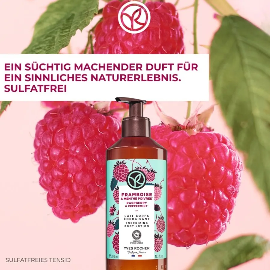De framboos & pepermunt bodymilk zonder siliconen of kleurstoffen geeft een natuurlijk gevoel door de huid te hydrateren en zacht te parfumeren