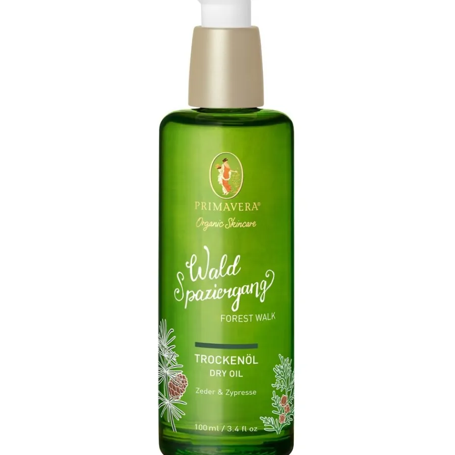 De nieuwe PRIMAVERA Organic Skincare Forest Walk Dry Oil maakt indruk met zijn vegan formulering van zorgvuldig geselecteerde biologische ingrediënten. De natuurlijke huidverzorging verwent je met een verfrissende, revitaliserende bosgeur van biologische ceder en biologische cipres en biedt intensieve verzorging voor elk huidtype: biologische ceder kan de doorbloeding van de huid bevorderen en heeft een balancerende en stabiliserende werking. Biologische cipres heeft ook antibacteriële en adstringerende eigenschappen. De stimulerende geur van het bos verfrist de zintuigen na elke toepassing en verkwikt lichaam en geest.