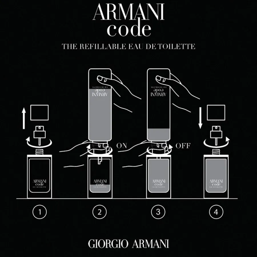Dankzij de innovatieve navulling kan de geur worden bijgevuld zonder een druppel te verspillen: Verwijder gewoon de dop van de flacon en draai het verstuivingshulpstuk eraf. Plaats vervolgens de navulling ondersteboven in de open fles en zet het draaimechanisme op ON. Zodra de fles volledig gevuld is, stopt de vloeistof automatisch. Zet vervolgens het draaimechanisme van de navulfles op OFF en haal de navulling uit de fles. Draai tot slot de spraybevestiging terug op de fles en plaats de dop terug. Klaar!