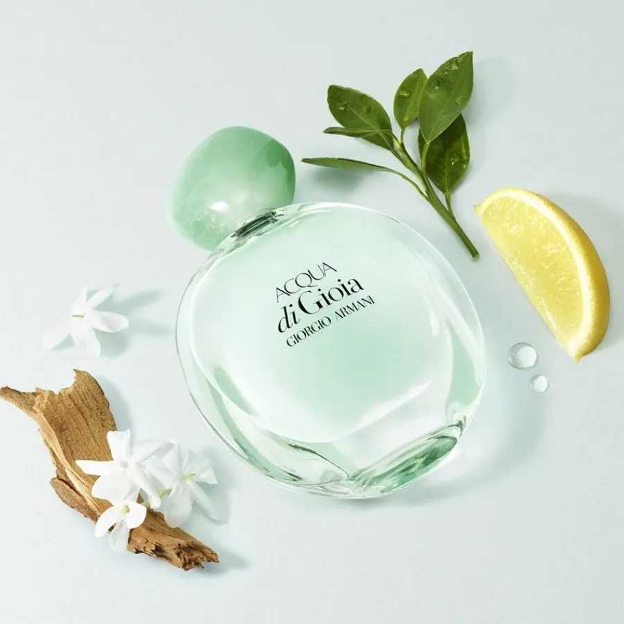 Geïnspireerd door de kracht van de natuur is Acqua di Gioia van Giorgio Armani een bloemig-aquatische geur die lichtheid en frisheid belichaamt. De compositie opent met de sprankelende noot van limoen primofiore. De transparante elegantie van sambacjasmijn ontvouwt zich in het hart, aangevuld met subtiele accenten van zoete pioenroos die zorgen voor een zachte sensualiteit. De basis van warm cederhout zorgt voor een subtiele diepte en rondt de geurbeleving harmonieus af. Het ontwerp van de flacon volgt het thema van de natuur: de gebogen vorm doet denken aan een waterdruppel, terwijl de mintgroene kleur en de smaragdgroene dop het waterelement benadrukken. Acqua di Gioia is een eerbetoon aan optimisme en verbondenheid met de natuur.