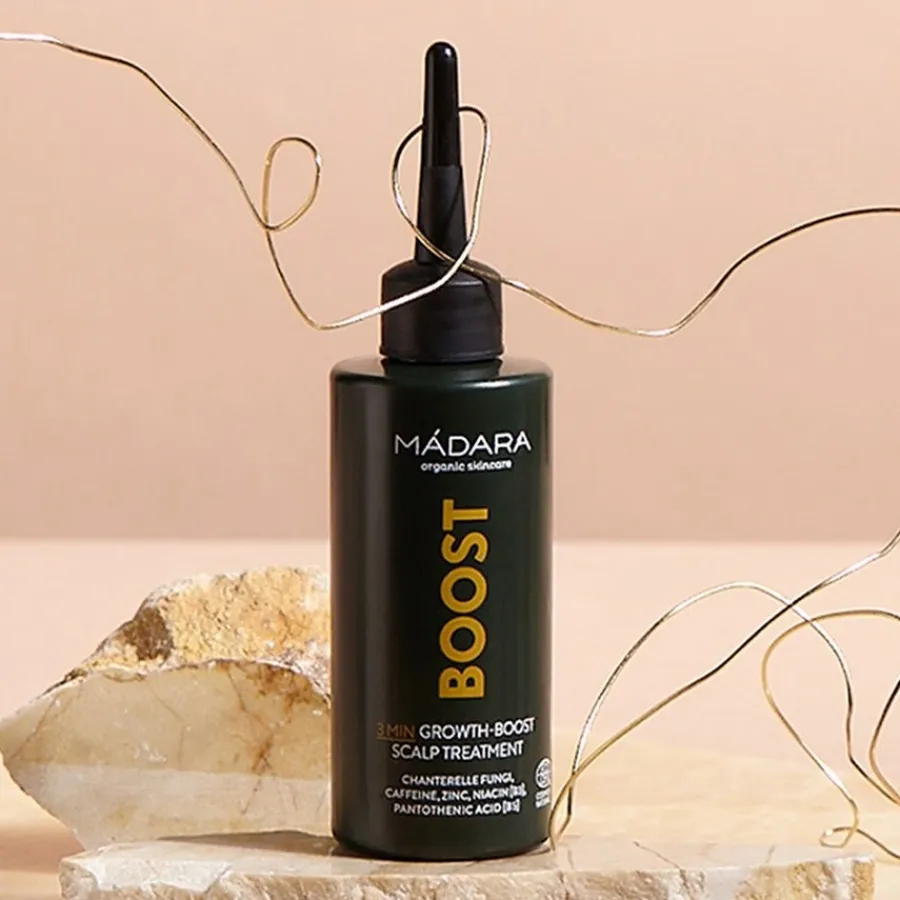 De 3-Min Growth-Boost Scalp Treatment is een waardevol verzorgingsproduct van MÁDARA. Deze behandeling voorziet je hoofdhuid van een rijke voorraad stimulerende actieve ingrediënten en geeft je gezond uitziend haar! De fungi-gebaseerde haarbehandeling is speciaal ontwikkeld voor haarverzorging vóór het wassen.