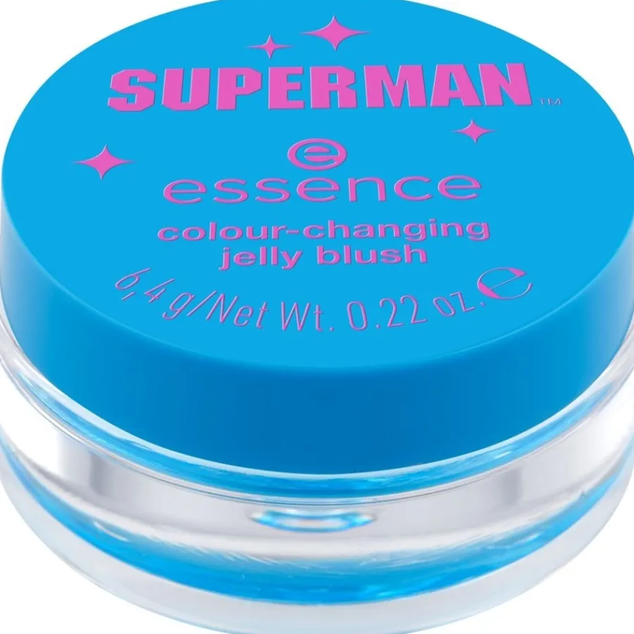 Met zijn blauwe look is de Colour-Changing Jelly Blush uit de Superman-editie van Essence een absolute blikvanger en geeft je zin om interessante make-up te creëren. Deze blush is een pH-reactieve blush. Hij reageert op de pH-waarde van je huid en verandert na het aanbrengen in een zachtroze kleur. Afhankelijk van de pH-waarde ziet dit er bij iedereen net iets anders uit en maakt het de look helemaal individueel. Breng afhankelijk van de gewenste kleurintensiteit meer of minder blush aan op de huid.