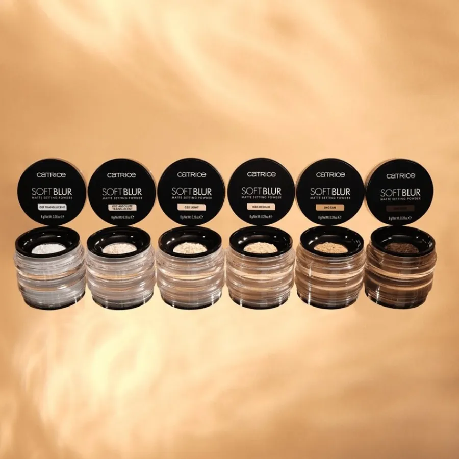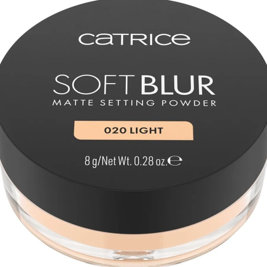 De Soft Blur Matte Setting Powder van Catrice geeft de teint een egale en natuurlijk matte finish. Als los poeder wordt het gekenmerkt door een ultralichte, fijne textuur die gewichtloos op de huid ligt. Het kan een optisch soft-focus effect creëren, waardoor de huid er naadloos en glad uitziet. Ongewenst glimmen wordt op betrouwbare wijze tegengegaan, wat resulteert in een langhoudende matte look die zelfs bij flitslicht niet reflecteert. Toegepast als laatste stap in de make-up routine, kan het poeder de levensduur van de foundation verlengen. Het is veelzijdig en geschikt voor het fixeren van grote oppervlakken en voor de gerichte baktechniek. De formule met ingrediënten zoals maïs- en tapiocazetmeel kan gemakkelijk en gelijkmatig met een kwast worden aangebracht en gemengd. De innovatieve verpakking maakt schoon gebruik van het losse poeder mogelijk. In de tint “001 Translucent” is het transparant en past het zich aan elke huidtint aan.
