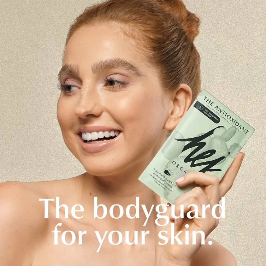 zodat je bij regelmatig gebruik tekenen van uitdroging kunt voorkomen. Sint-janskruid heeft een ontstekingsremmend effect en heeft een kalmerend effect op jeukende huidzones in het gezicht. Het antioxiderende effect is te danken aan het Sint-Janskruid dat erin zit en kan worden erkend als vertragend voor huidveroudering. De hennep in de maskers voorziet de gezichtshuid ook van waardevolle omega-3 vetzuren. Deze maken je huid aangenaam soepel.Breng het Antioxidant Sheet Mask van Hej Organic als volgt aan: Haal eerst het masker uit de beschermhoes en verwijder de beschermfolie. Plaats het masker vervolgens op je gezicht en vorm het met je handen naar de contouren van je gezicht. Nadat je het een kwartier hebt laten zitten, verwijder je het masker. Je kunt het resterende serum voorzichtig inmasseren. Eventuele resten kun je gemakkelijk verwijderen met een wattenschijfje.