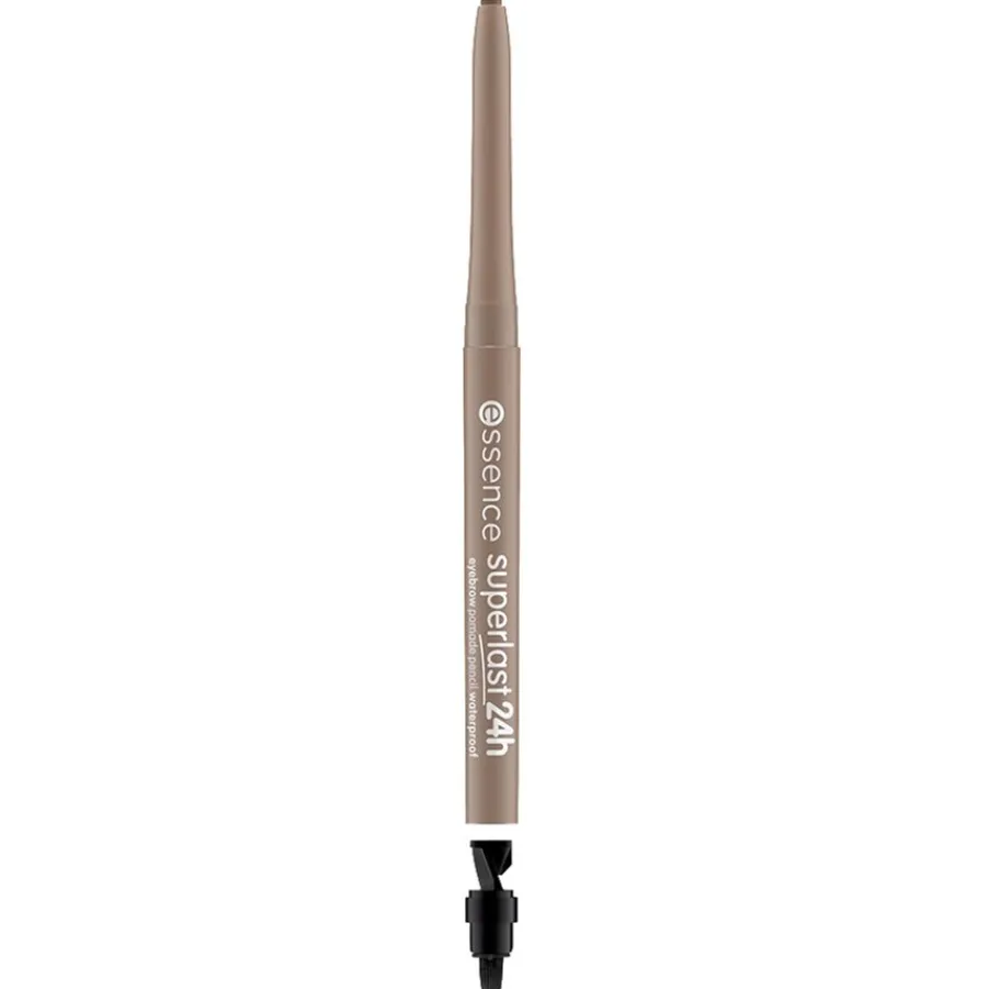 Verzorgde en mooi gevormde wenkbrauwen ronden elke make-up look af</h2De Superlast 24h Eyebrow Pomade Pencil is een pommade make-up wenkbrauwkleur in een praktische draaibare pen. Dankzij de crèmige textuur is het heerlijk makkelijk aan te brengen. De geïntegreerde puntenslijper zorgt voor een goed geslepen stift, zodat je het potlood elke keer weer precies kunt aanbrengen. Dit potlood kan zelfs de kleinste gaatjes in de wenkbrauwen opvullen. Gebruik het innovatieve siliconenborsteltje om de wenkbrauwkleur in te werken. Dit zorgt voor een natuurlijke, mooie look die de hele dag blijft zitten.Laat je verleiden door de talloze cosmeticaproducten die het Beauty label Essence in het assortiment heeft. Of het nu voor de ogen, lippen of teint is, voor elke look vind je het juiste product.