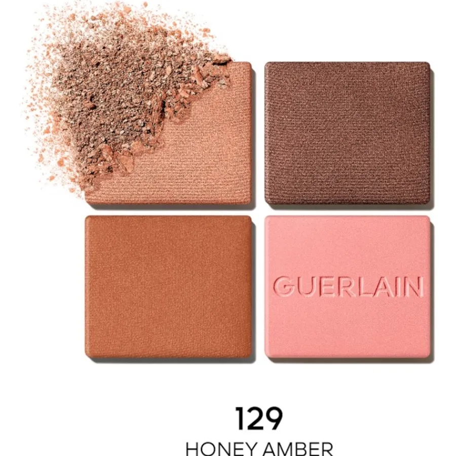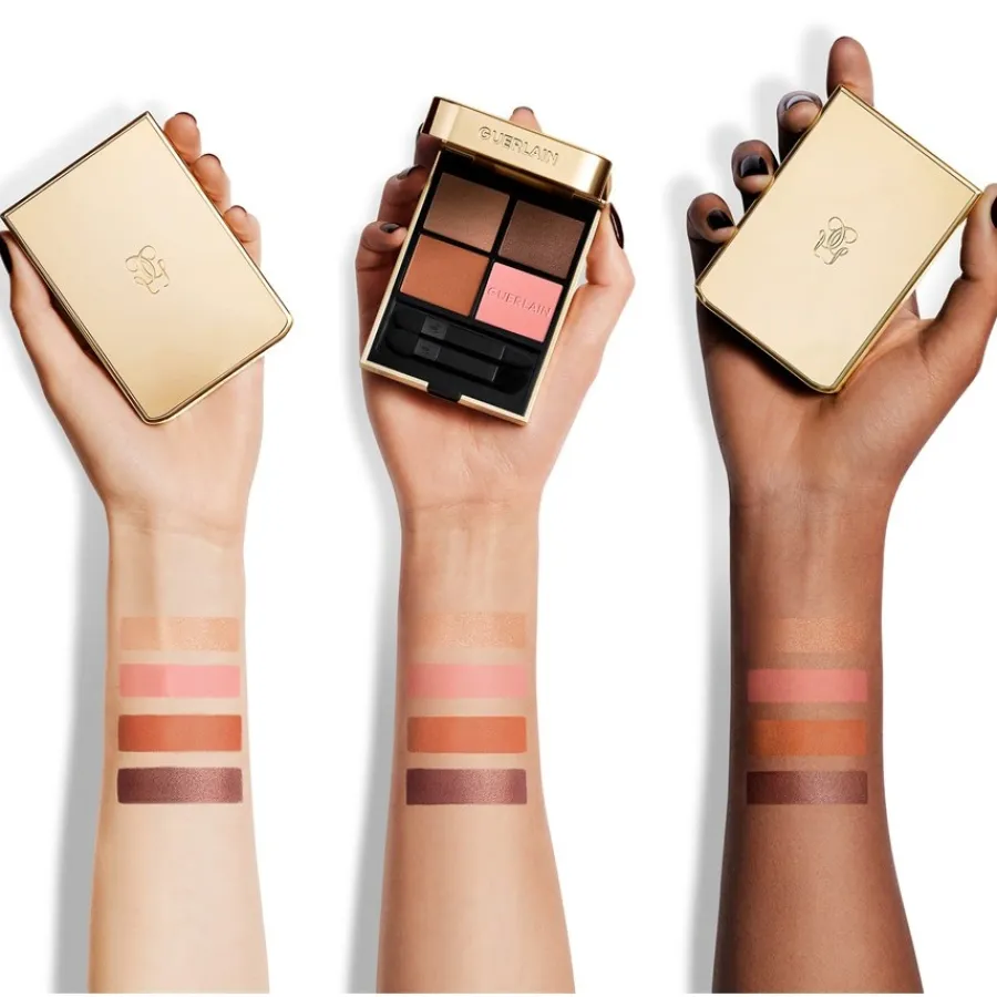 Het Guerlain Ombres G Eyeshadow Palette is een kwartet van vier harmonisch op elkaar afgestemde oogschaduws. Elk palet, verkrijgbaar in verschillende kleurwerelden zoals “Royal Jungle” of “Birdy Beige”, nodigt uit tot creativiteit en maakt veelzijdige oogmake-up mogelijk. De specialiteit ligt in de combinatie van vier verschillende afwerkingen: een intens satijn, een diep mat, een lichtgevend metallic en een stralend parelmoer. Hun uitzonderlijke textuur is rijk aan intense pigmenten die zorgen voor een langdurige kleurbetaling en een medium dekking. De oogschaduwformule is ook verrijkt met wilde rozenolie. Deze geraffineerde combinatie van kleuren en texturen in een luxe etui vormt de basis voor talloze looks, van natuurlijk tot dramatisch.