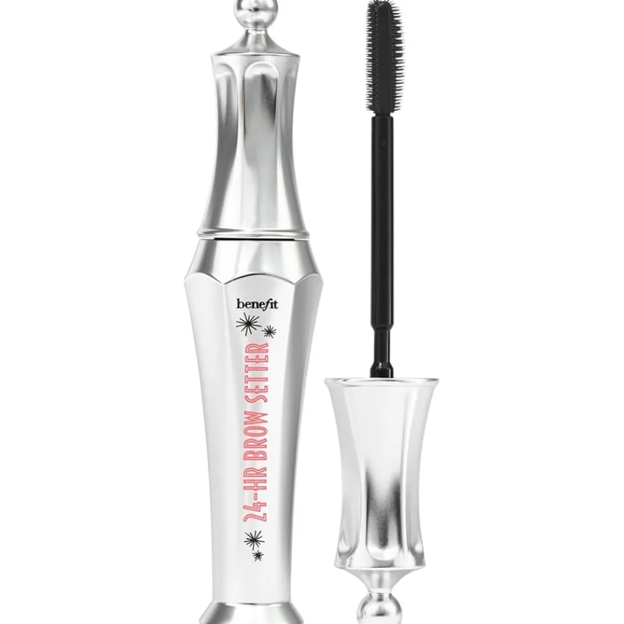 Het dubbelzijdige borsteltje maakt het gemakkelijker om de wenkbrauwgel aan te brengen. Als je klaar bent met het opmaken van je wenkbrauwhaartjes met een wenkbrauwpotlood of wenkbrauwborsteltje, breng dan eerst de 24-HR Brow Setter aan op alle wenkbrauwhaartjes van wortel tot punt met de lange kant van het borsteltje. Gebruik in de tweede stap de kant met de korte haartjes van het borsteltje. Breng hiermee de wenkbrauwen in een perfecte boog. De wenkbrauwhaartjes worden op deze manier gefixeerd. De huls van de applicator ligt prettig in de hand en zorgt ervoor dat het kleine borsteltje goed geleid kan worden. Het gebogen design van de zilverkleurige huls met roze letters en Benefit opschrift geeft de huls een exclusieve flair.