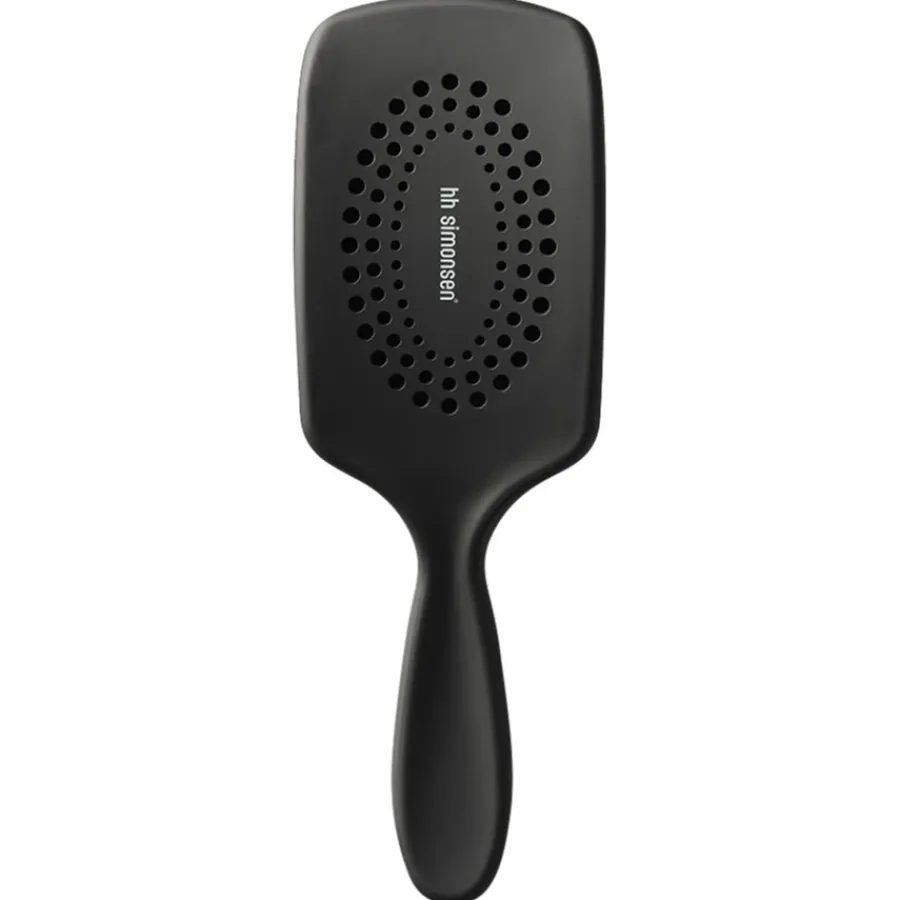 Kammen en borstels moeten zorgvuldig geselecteerd worden voor je eigen haartype. De peddelborstel van HH Simonsen is bijzonder geschikt voor lang en dik haar dat erg weerbarstig is. De SmartFlex borstelharen met stimulerende bolvormige punten verbeteren de doorkambaarheid en voorkomen effectief gespleten haarpunten. Dit maakt het de ideale borstel voor nat en vochtig haar. Als je naar de achterkant van de Wonder Brush Paddle kijkt, zie je een paar gaatjes. Deze zijn met opzet aangebracht zodat de borstel snel droogt na het kammen van nat haar en lang bruikbaar blijft.
