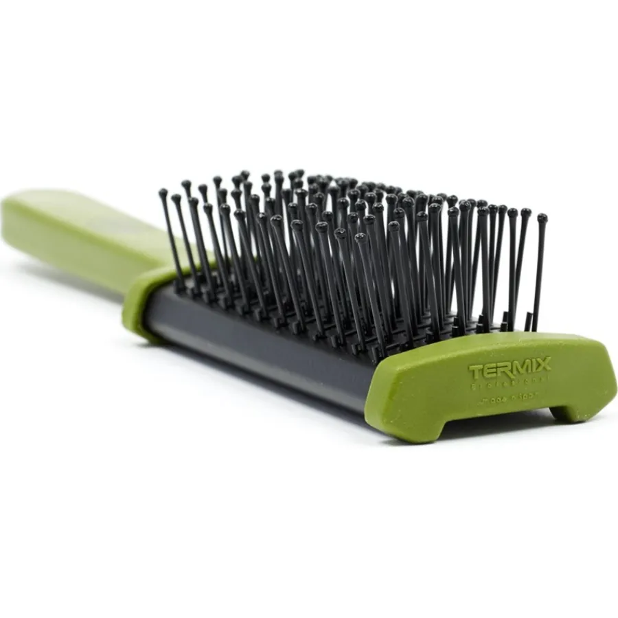 Deze borstel is geschikt voor middellang en lang haar. Het heeft platte borstels met speciale vezels die het haar beschermen tegen breken. Ze kunnen verdere beschadiging van de haarstructuur voorkomen. Het maakt niet uit of nat, vochtig of volledig droog haar wordt gekamd. De Barber Thermal Flat Brush kan alleen of in combinatie met een föhn worden gebruikt.De Barber Thermal Flat Brush kan worden gebruikt als professionele styling tool. Het gebied onder de borstels is geventileerd. Met snelle bewegingen breng je meer lucht in het haar. Dit creëert meer volume en lift tegelijkertijd de haaraanzet. Dit zijn ideale omstandigheden voor het creëren van speciale kapsels zoals een pompadour. Hoge temperaturen door wrijving treden niet op. TERMIX maakt dit mogelijk dankzij een speciale keramische coating.