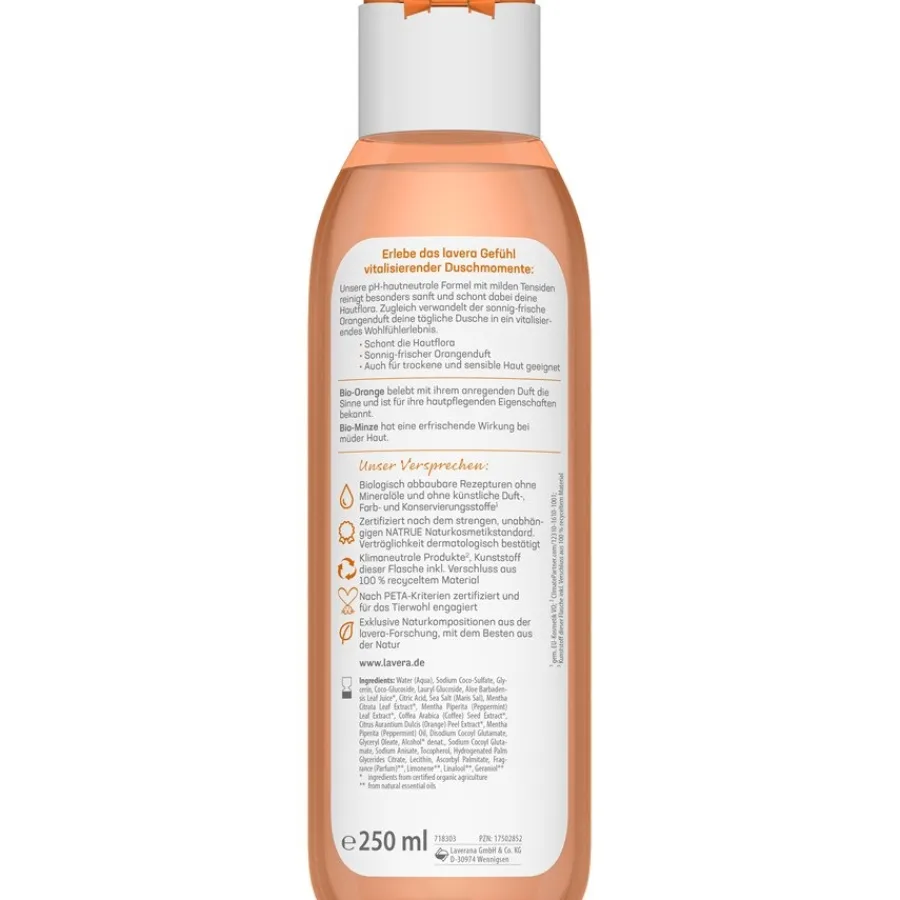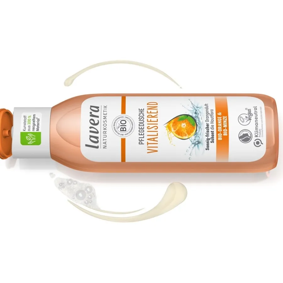 Met Lavera’s Organic Orange & Organic Mint Vitalising Shower Gel kun je slechte stemmingen en vermoeidheid gewoon wegdouchen! De fruitige geur van zonovergoten sinaasappels verkwikt de zintuigen en zorgt voor een vrolijke douche-ervaring. Biologische munt geeft je huid een heerlijk fris en licht verkoelend gevoel. Omdat de doucheverzorging pH-neutraal is, is het geschikt voor dagelijkse huidverzorging. De gevoelige huidflora wordt niet verstoord en behoudt haar natuurlijke balans. Je kunt jezelf dus elke dag trakteren op een good-mood moment onder de douche en tegelijkertijd je huid verzorgen.