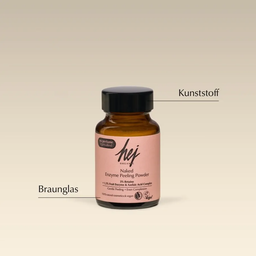 Het Naked Enzyme Peeling Powder van Hej Organic exfolieert de huid op milde wijze en reinigt haar grondig van onzuiverheden, overtollig talg en dode huidcellen. Het voorkomt de vorming van nieuwe onzuiverheden en zorgt voor een egale teint. Tegelijkertijd revitaliseert en verfrist de gezichtsverzorging de huid. Het is de ideale keuze voor de onzuivere, vette en vette huid. Breng het huidverzorgingsproduct een of twee keer per week aan. Giet een hoeveelheid ter grootte van een hazelnoot in je handen, laat het schuimen en breng het 1 tot 2 minuten met ronddraaiende bewegingen aan op de huid. Spoel je gezicht vervolgens af met lauwwarm water. Ervaar een gladde, egale huid!