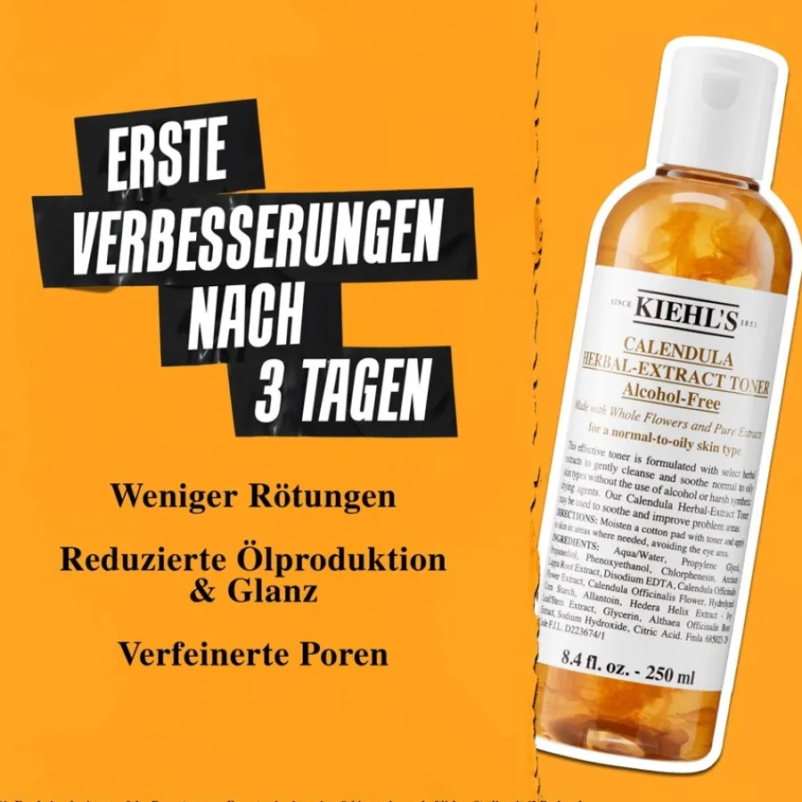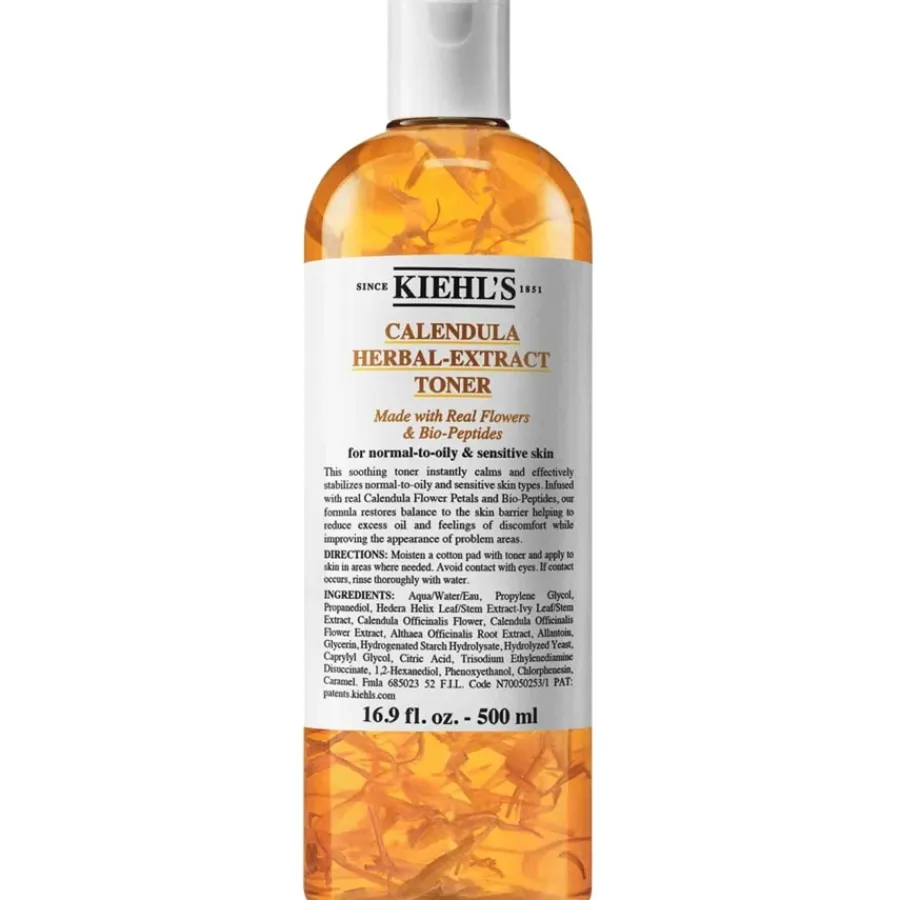 De Calendula Herbal Extract Toner is al sinds de jaren 1960 een klassieker bij Kiehl’s. Deze toner wordt gekenmerkt door zijn alcoholvrije formule die de huid zachtjes zuivert zonder haar droog aan te laten voelen. De formule bevat handgeplukte calendulabloemblaadjes, calendula-extract, kliswortel en allantoïne en is afgestemd op de behoeften van de normale tot vette en gemengde huid. Na het aanbrengen voelt de huid verfrist en comfortabel aan. Dankzij de lichte, vloeibare textuur is de toner gemakkelijk in gebruik en bereidt hij de huid voor op de volgende stappen in de huidverzorgingsroutine.</p
