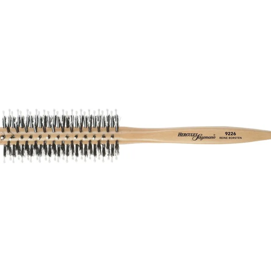 Ben je op zoek naar een hoogwaardige borstel om je haar te stylen? Borstels & kammen van Sägemann zullen je zeker overtuigen. De lichtgekleurde houten ronde borstel model 9226 is een borstel geschikt voor korte tot halflange kapsels, die wordt gekenmerkt door het gebruik van hoogwaardige materialen en een goede functionaliteit. De kop van de haarborstel heeft natuurlijke en synthetische borstelharen, die gelijkmatig over het model zijn verdeeld. De kunststof borstelharen zijn aan de punt licht afgerond om verwondingen te voorkomen. Het handvat is gemaakt van hout en heeft een lichaamsvriendelijke vorm. De ronde borstels van het label liggen prettig in de hand en maken ontspannen stylen mogelijk.