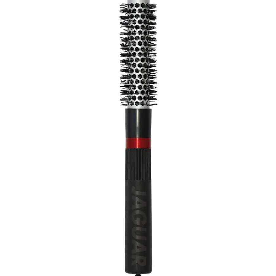 De Jaguar T 300 ronde borstel uit de categorie Haarborstels & Kammen is gemaakt van een materiaal dat verrijkt is met natuurlijke stoffen en tijdens het borstelen ionen afgeeft aan het haar. De ionen hydrateren en verzachten het haar en verkorten de droogtijd aanzienlijk. Hoe is dit mogelijk? Enerzijds zorgen de ionen ervoor dat de waterdruppels worden afgebroken tot microdruppels en het water sneller door het haar wordt opgenomen. Anderzijds maken de ionen de basis van het haar glad en sluiten ze de schubbenlaag. Het soepele, gladde haar kan het invallende licht beter weerkaatsen en ziet er helderder, gezonder en verzorgd uit. Bovendien voorkomt borstelen met de T 300 dat het haar statisch geladen raakt.