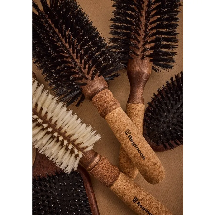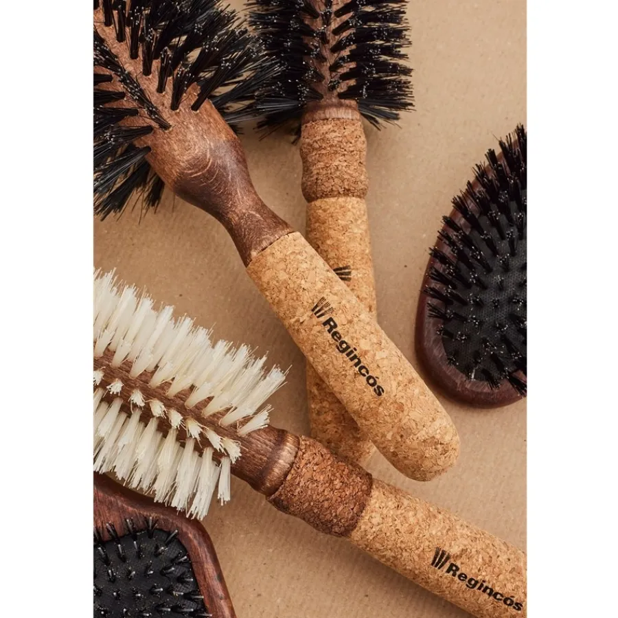 Betere styling met kurk!De Ø 26/65 mm blonde ronde borstel van Regincós wordt gekenmerkt door verschillende productkenmerken. Eerst en vooral is er het handvat van kurk. Kurk is een natuurlijk materiaal, dus iedereen die waarde hecht aan duurzaamheid doet er goed aan om het te gebruiken. Het materiaal is ook erg licht, dus langere tijd met de kwast werken is geen probleem. De kwast is ook antistatisch. Dit merk je als je voor het eerst met de borstel door je haar gaat. Omdat ze niet elektrisch geladen worden, zitten ze meteen perfect in de gewenste positie.De borstelharen zelf bestaan voor 65 procent uit everzwijnhaar en voor 35 procent uit nylon. Deze maken het haar soepel en geven het een prachtige glans.De Ø 26/65 mm blonde ronde borstel van Regincós is gemakkelijk schoon te maken omdat kurk waterafstotend is. Gewoon afnemen met een vochtige doek of onder de kraan houden.