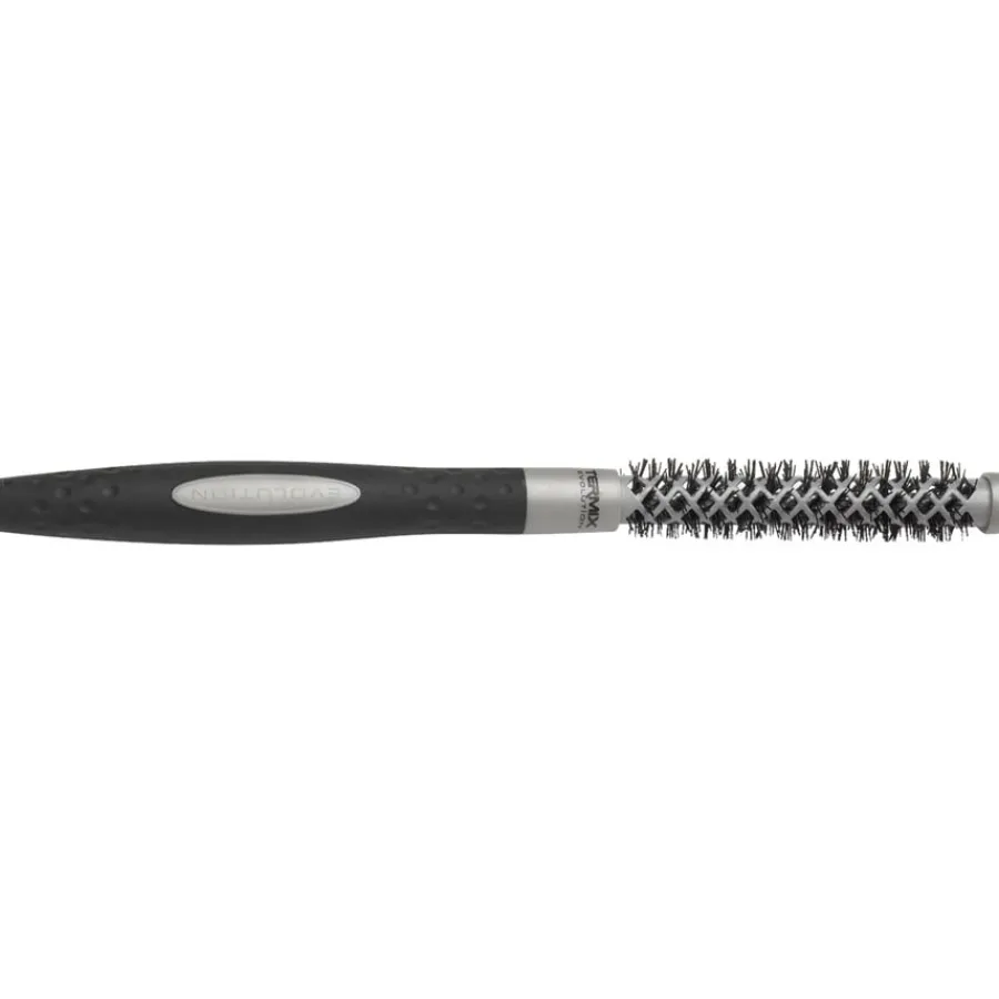De Evolution Basic ronde borstels zijn verkrijgbaar in verschillende maten. Ze hebben een diameter van 12 tot 60 mm en verkorten de droogtijd tot 30%.Harstypen met een gemiddelde dichtheid zijn moeilijker te temmen door hun sterkere structuur. De stuggere vezels van de TERMIX borstels lossen dit probleem op. Tegelijkertijd zijn ze ook geschikt voor alle andere haartypes.De vezels beschadigen de haarstructuur niet en hebben geen negatief effect op glans en gezondheid. Bij het doorkammen van het haar voorkomt een gecoate basis dat aërosolen en andere resten zich ophopen. Voor professioneel gebruik is de handgreep ergonomisch ontworpen en heeft hij een anti-slip oppervlak. Zelfs met natte handen kunnen de ronde borstels van Evolution Basic nauwkeurig door het haar worden geleid.