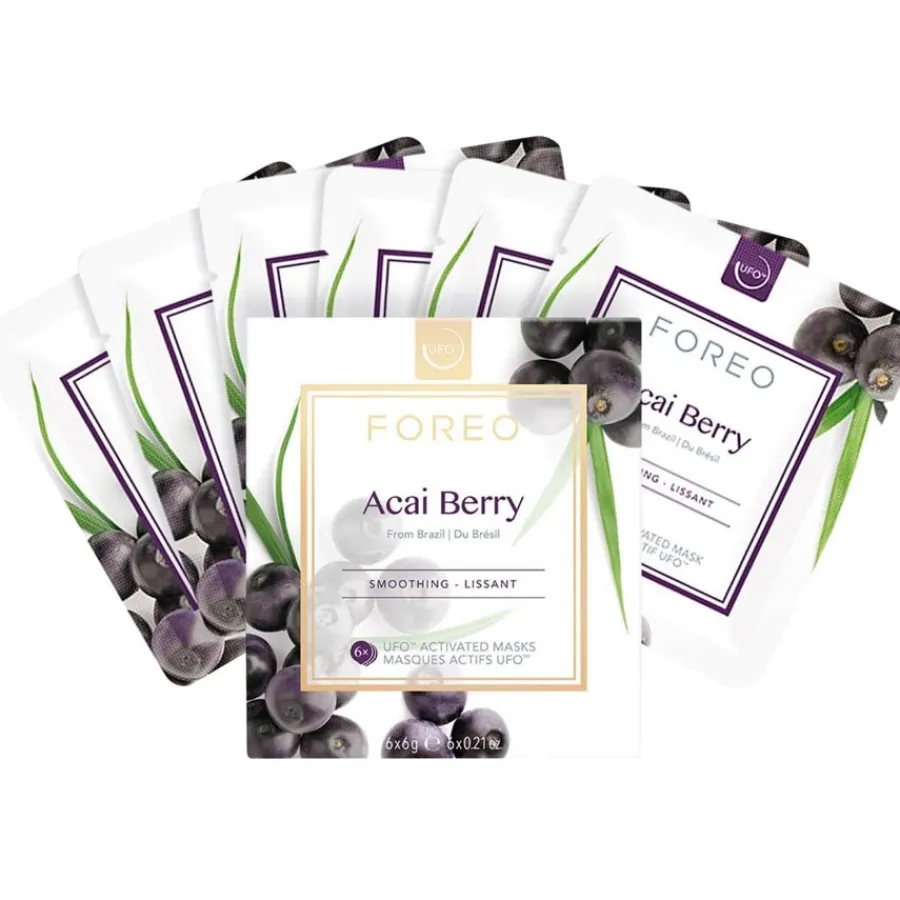 Met zijn hydraterende en normaliserende ingrediënten voorziet de Foreo UFO Mask Acai Berry maskerbehandeling de huid van veel vocht en zorgt tegelijkertijd voor een evenwichtige talgbalans – waar zowel de vette als de droge huid baat bij heeft. Tegelijkertijd heeft het masker een plumping effect dat de huid onmiddellijk revitaliseert. Hierdoor ziet de huid er frisser en jonger uit, terwijl oppervlakkige expressielijntjes en kleine rimpeltjes worden verminderd. De versterkende ingrediënten ondersteunen de huidbarrière om toekomstig vochtverlies te voorkomen. Met de UFO-technologie kun je de ingrediënten van het masker diep in de afzonderlijke huidlagen aanbrengen door de “UFO” over de huid te bewegen.