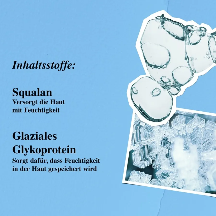 - Geformuleerd met 10,5% squalaan en glaciale glycoproteïne.