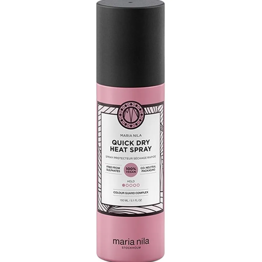 Breng de Extras Quick Dry Heat Spray van Maria Nila eenvoudig aan op vochtig haar. De innovatieve formule beschermt het haar niet alleen effectief tegen hitte, maar laat het ook sneller drogen. Je kunt je haar nu gewoon föhnen en daarna een stijltang of krultang gebruiken. De hittespray wordt geleverd in een bus van 150 ml en is dus voldoende voor meerdere toepassingen.