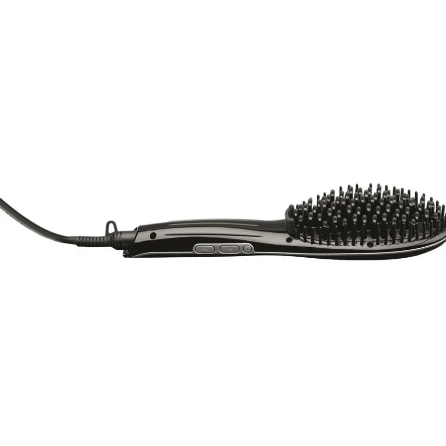 De meeste elektrische apparaten voor het bewerken van haar zijn erg ingewikkeld in gebruik. Zo niet de Easy Straight Brush van Efalock Professional. Het heeft een digitaal display waarmee de temperatuur op de borstelkop in stappen van 10° nauwkeurig kan worden geregeld. Maximale verwarming tot 200° is mogelijk. Het lange netsnoer biedt je optimale bewegingsvrijheid bij het stylen van je haar. De borstel heeft een stroomverbruik van 25 watt, is ideaal voor onderweg en biedt als aangenaam neveneffect een zachte, stimulerende massage van de hoofdhuid.