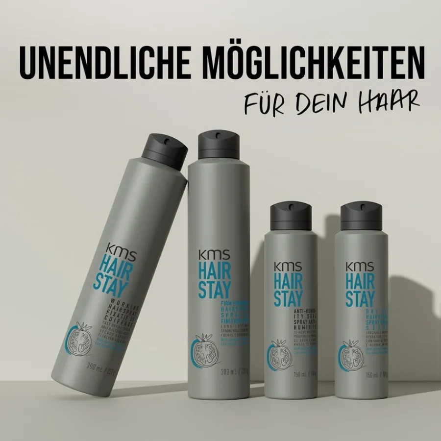 De KMS Hairstay Working Hairspray kan worden vertaald als “werkende haarlak”. Deze ongebruikelijke naam beschrijft eigenlijk heel goed de specialiteit van het haarstylingproduct. Al na het opsprayen kun je je haar absoluut ongecompliceerd en eenvoudig stylen. Dit komt door de natuurlijke finish: het haar plakt niet aan elkaar en je kunt zelfs zelf de hold bepalen. Hoe meer je op het haar aanbrengt, hoe sterker de hold. Tegelijkertijd wordt het effectief beschermd tegen vocht en UV-stralen en heeft het een prachtige glans. Laat je creativiteit de vrije loop en probeer steeds weer nieuwe geweldige hairstyling ideeën uit: De KMS Hairstay Working Hairspray biedt je niet alleen maximale flexibiliteit, het droogt ook nog eens aangenaam snel.