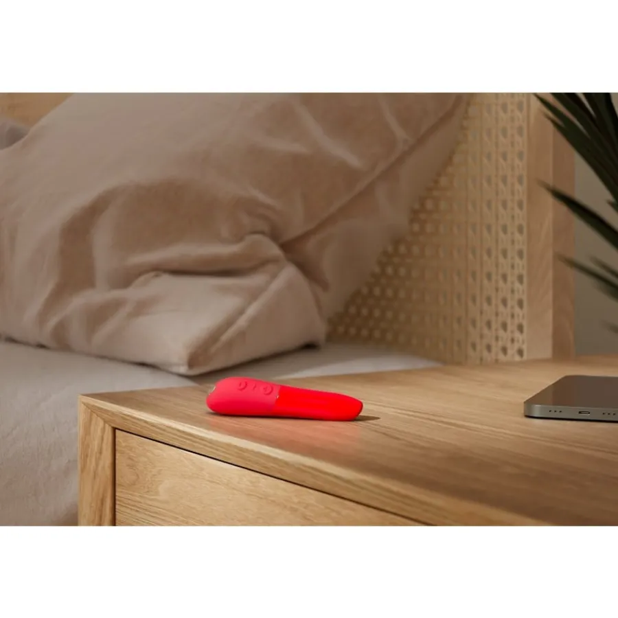 De We-Vibe Tango X is een compacte bullet vibrator in een opvallende kersenrode kleur. Het ergonomische ontwerp en het gladde oppervlak van lichaamsvriendelijk siliconen zorgen voor een comfortabele bediening. Het apparaat is volledig waterdicht en daarom gemakkelijk schoon te maken. Hij wordt bediend met drie intuïtieve knoppen waarmee je de intensiteit kunt aanpassen en kunt schakelen tussen verschillende vibratiepatronen. Dankzij het discrete formaat en het lage gewicht is de Tango X een praktische metgezel op reis. De bediening is ontworpen voor eenvoudig en direct gebruik. De meegeleverde USB-kabel wordt gebruikt voor het opladen, wat een flexibele stroomvoorziening mogelijk maakt. Het apparaat is ontworpen voor gerichte stimulatie.