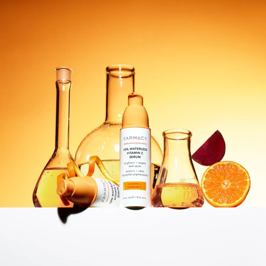 Het 10% Waterless Vitamin C Serum uit de categorie Serums & Kuren van Farmacy Beauty pakt donkere vlekjes aan, verheldert de algehele teint en egaliseert de teint. Het hydrateert en verstevigt de huid. Dankzij de waterloze technologie is het zeer effectief en tegelijkertijd zacht voor de huid. De zijdezachte textuur wordt onmiddellijk opgenomen zonder vet, plakkerig of irriterend te zijn voor de huid. Het is olie- en geurvrij. Breng het huidverzorgingsproduct één keer per dag aan op je gezicht. Ervaar een egale, gladde huid en een stralende teint!