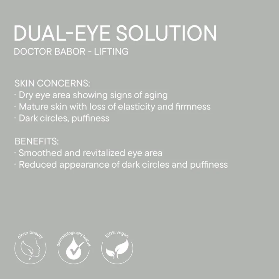 . Terwijl de Eye Cream Day het gebied rond de ogen verstevigt en gladder maakt, donkere kringen vermindert en het gebied rond de ogen weer laat stralen, ondersteunt de Eye Cream Night de microcirculatie en helpt ’s nachts wallen, donkere kringen en wallen onder de ogen te verminderen.De Dag Oogcrème bevat een Day Boost Complex en Hydro-Filler, die een gladmakend en verstevigend effect hebben. De Nachtcrème is daarentegen uitgerust met het Re-Charge Complex, dat een positief effect heeft op de microcirculatie van de huid. Je wordt de volgende dag wakker met een gladdere, stevigere en jeugdigere oogcontour.Breng de Eye Day Cream ’s ochtends na het reinigen van je gezicht aan op de oogcontouren en klop zachtjes in met je vingertoppen. Daarna kun je je gebruikelijke oogmake-up aanbrengen.De Nachtcrème breng je ’s avonds na het reinigen aan op het gebied rond de ogen en klop je zachtjes in.