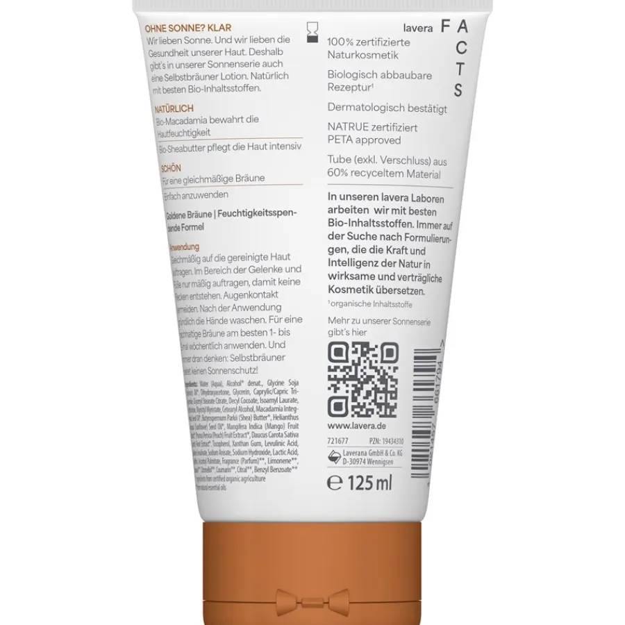 De Lavera Sun Sensitive Zelfbruinende Lotion zorgt voor een prachtige bruine teint zonder het risico op huidkanker of zonnebrand. Want: terwijl UV-stralen de huid blijven belasten, zelfs met toegepaste zonverzorging, is Lavera Sun Sensitive Self-Tanning Lotion eerder een zegen. Tegelijkertijd is hij heel gemakkelijk aan te brengen voor een gelijkmatig bruiningsresultaat, zelfs op moeilijk bereikbare plekken. Je moet de tanning lotion alleen spaarzaam aanbrengen op je voeten en gewrichten om vlekken te voorkomen. Het spreekt voor zich dat je na het aanbrengen ook je handen grondig moet wassen.