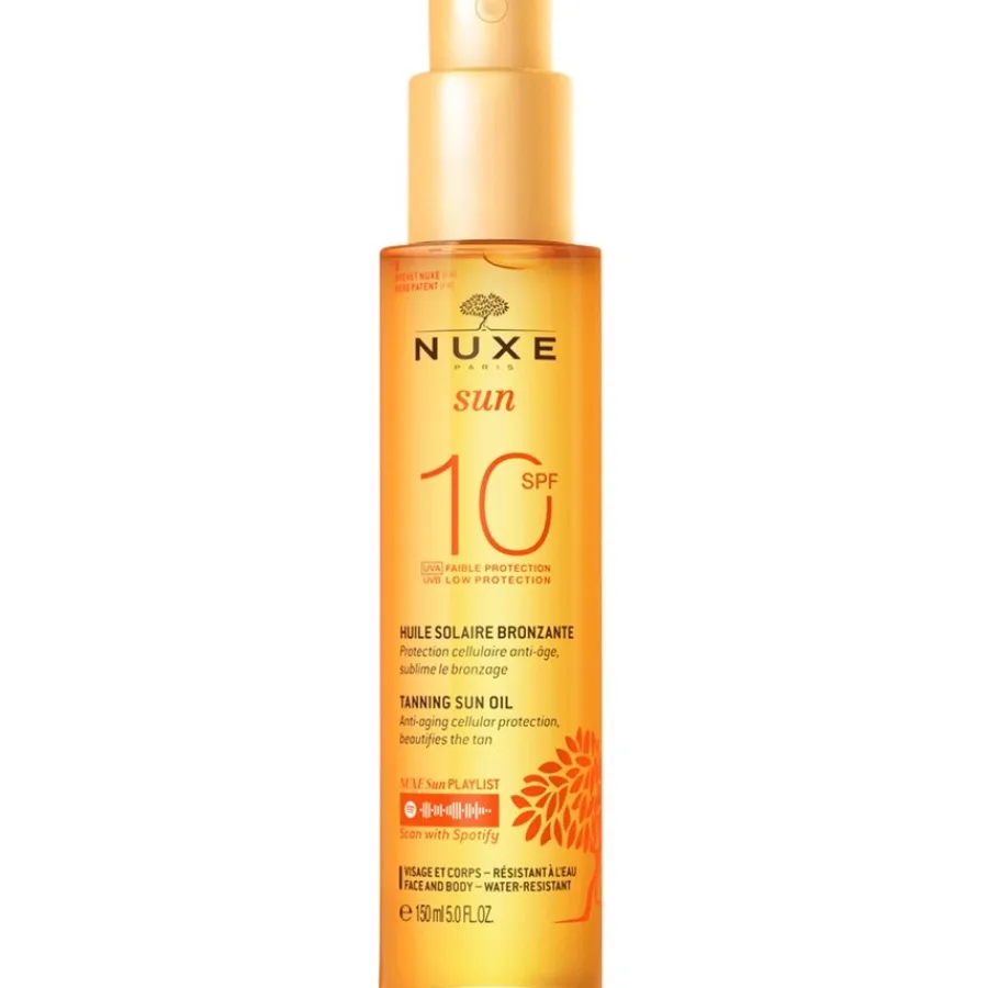 De Tanning Oil For Face and Body SPF 30 van Nuxe bevat hoogwaardige ingrediënten. Met macadamianoot-, zonnebloem- en sheabutterolie voedt het de huid en geeft het een zachte bruine teint. Waterhyacint voorziet de huid van veel vocht. Extracten van Kau Pe, een zonnebloemsoort, kalmeren de huid.